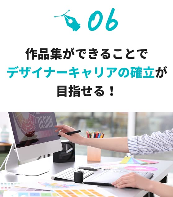 さまざまなデザイン案件を実際に手がけることで、実績を積み重ねることができ、自分の作品集がどんどん充実していきます。
