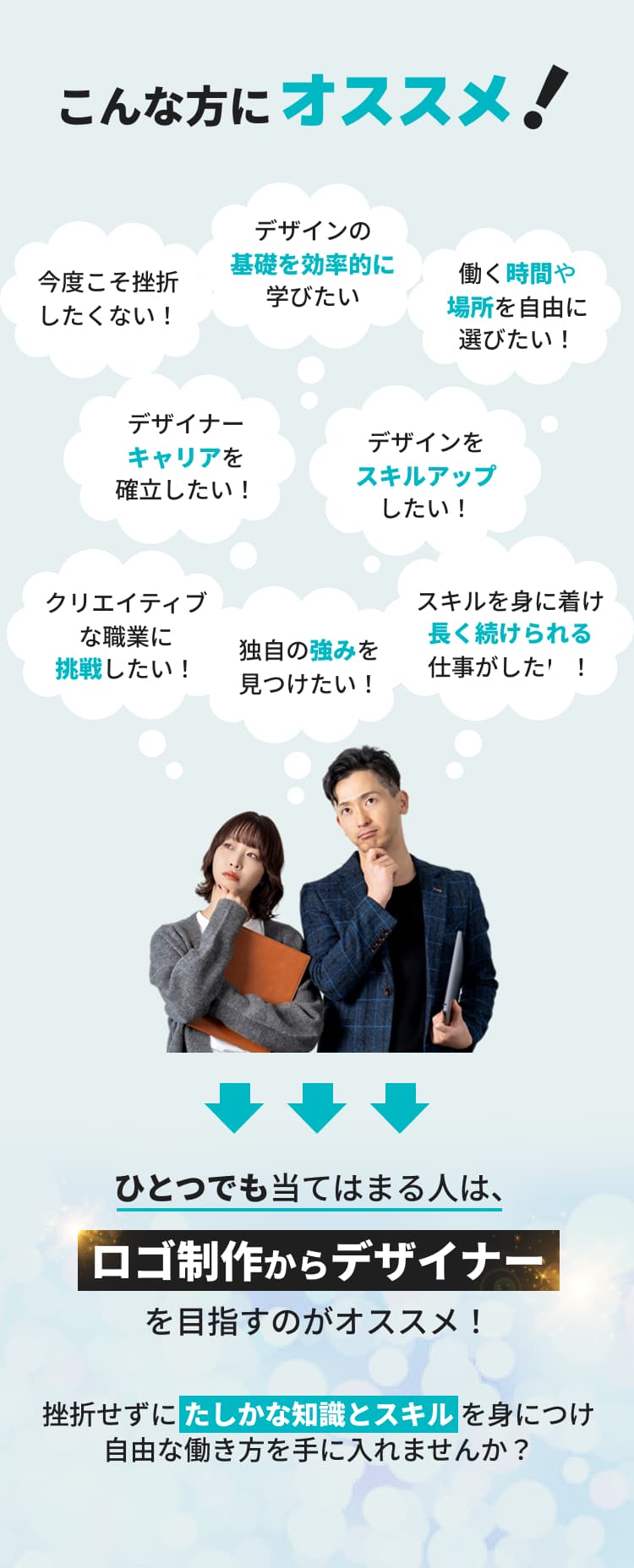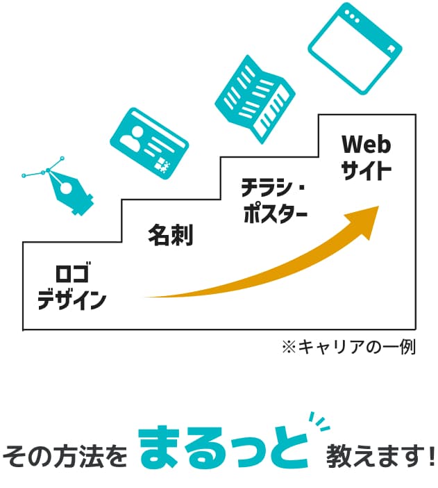まずはロゴ制作からデザイナーの世界へ足を踏み入れ、知識・スキルをレベルアップしながら次のデザインへ移行していくことが、デザイナーとして現実的かつ安全にキャリアを積み上げることができる方法なんです。