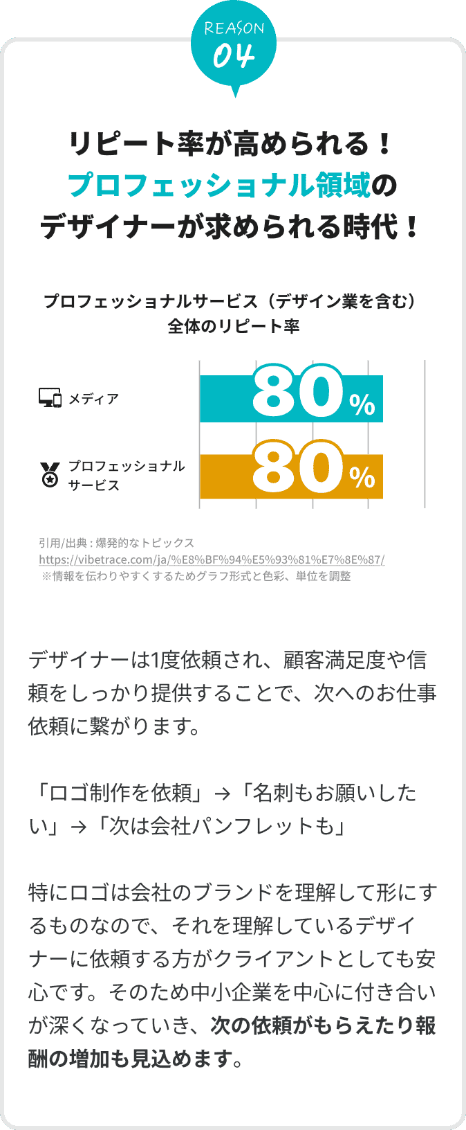 そのため、 「この人にデザインを依頼したい」と次の依頼がきて定期的に仕事(報酬)を得ることもできます。